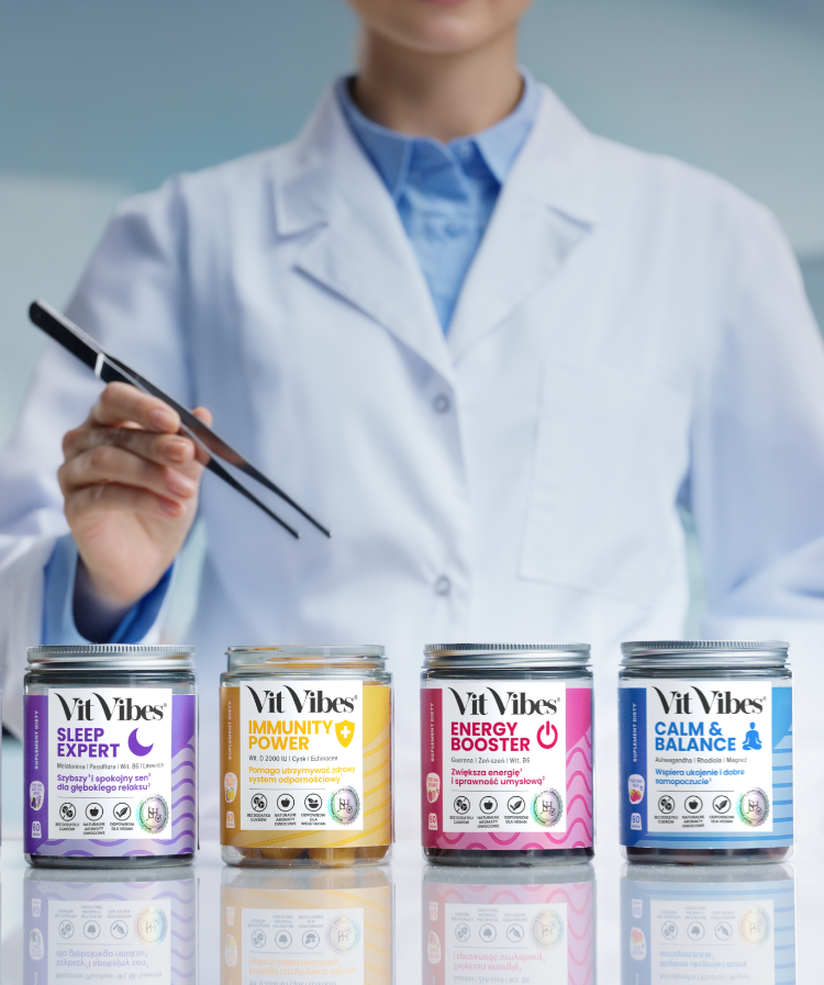 Czas stosowania suplementów diety Vit Vibes jest indywidualny i zależny od tego jaki wariant jest stosowany. Zaleca się, że dla produktów takich jak: Women’s Multi-Vit, Immunity Power, Calm & Balance czas stosowania powinien wynosić minimum 1 miesiąc, natomiast dla wariantu Energy Booster czy Sleep Expert czas stosowania powinien być dostosowany indywidualnie potrzeb.